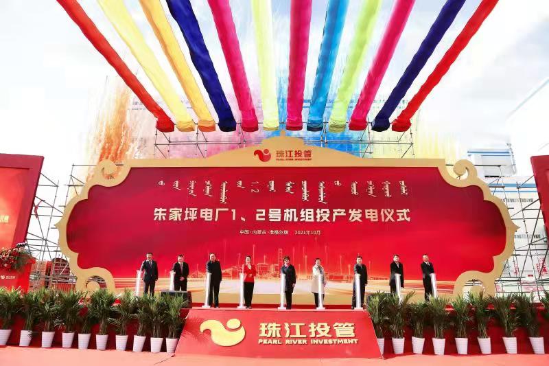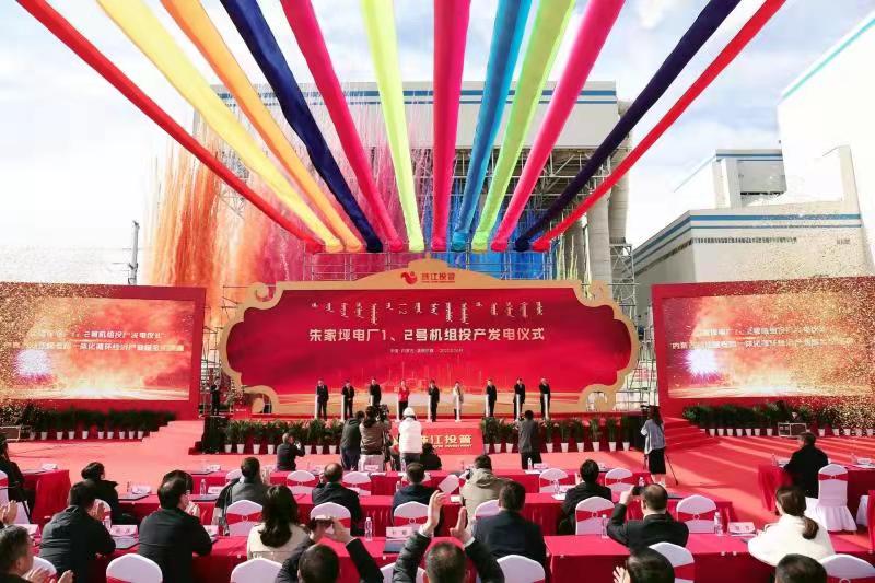 在启动仪式现场,内蒙古自治区发改委一级巡视员、副主任刘丽娟,内蒙古自治区工业和信息化厅副厅长胡瑞芬,准格尔旗人大常委会主任鲁占清,内蒙古自治区工商业联合会副主席吕万海,中国建设银行内蒙古自治区分行副行长李金才,中国能源建设西北电力建设第一工程有限公司董事长李春军,广东珠江投资管理集团有限公司总裁李志红,广东珠江投资管理集团有限公司董事副总裁李福来,内蒙古华厦朱家坪电力有限公司总经理彭文生等领导嘉宾登台,按动大屏幕,宣布朱家坪电厂1、2号机组正式投产发电。
