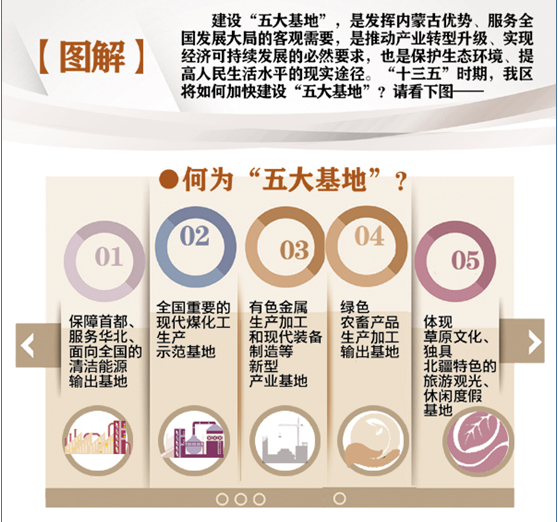 建设“五大基地”,是推动产业转型升级、实现经济可持续发展的必然要求。当前,内蒙古亟需进行产业结构转型。而建设“五大基地”,既发挥了内蒙古的资源优势,又有利于内蒙古产业结构转型升级,推动内蒙古经济持续健康发展。
